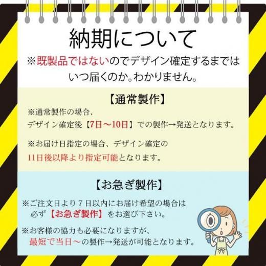 お客様のご協力 「スムーズなやりとり」も必要になりますがデザイン確定後、最短で翌日発送が可能となります。