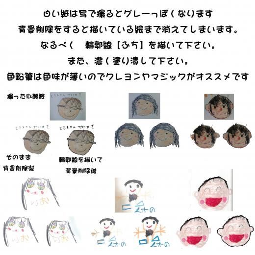 必ず輪郭等の線を太くし、マジックやクレヨン等で描いて下さい。
