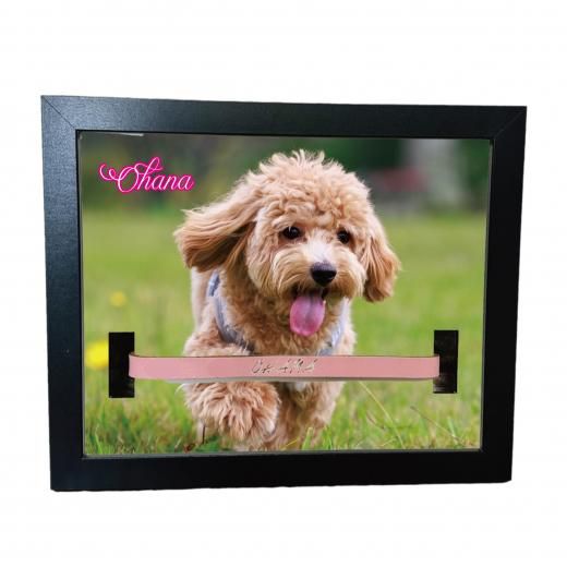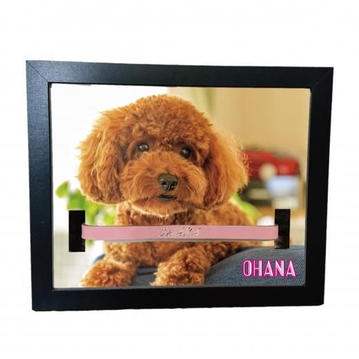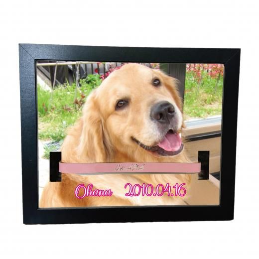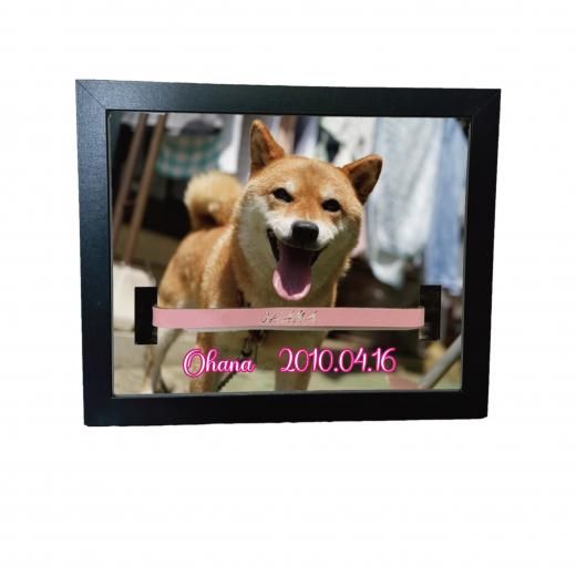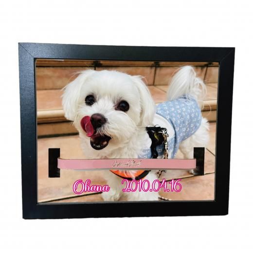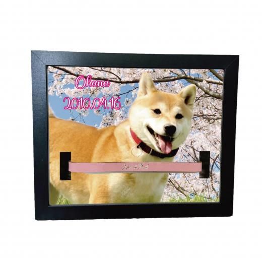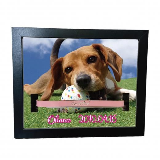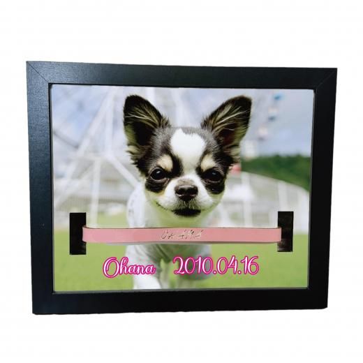 愛用していた首輪を一緒に飾れる穴あけ加工済みフォトフレームです。
